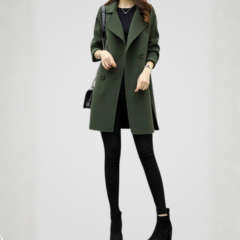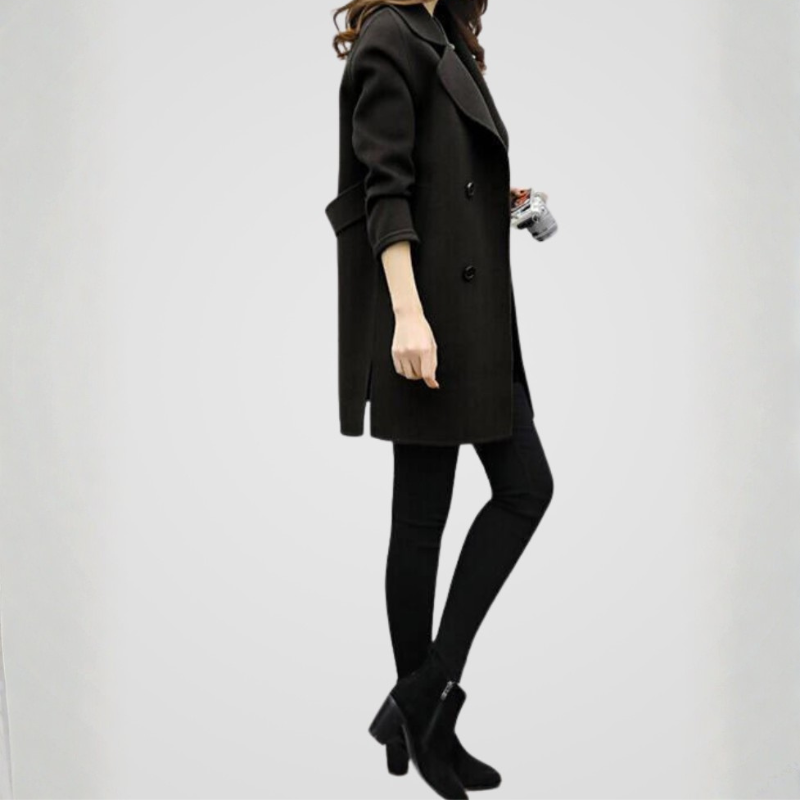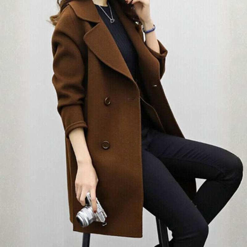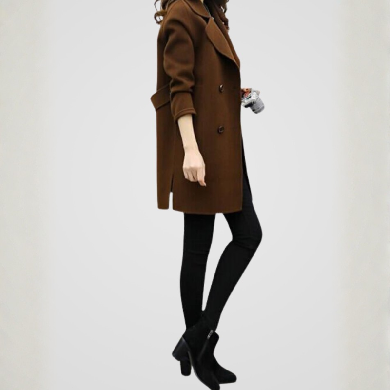 Płaszcz Celia wyróżniający się, podany linią oraz szczegółowym, dwurzędowym krojem, który opisuje całościowy, charakterystyczny charakter. Minimalistyczne zakończenie i rozwiązania klapy, że model łatwo rozkłada się, jak i bardziej formalnych.