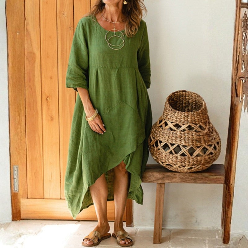 MARTA | Asymetryczna Sukienka z Lnu w Beżu